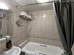 Номера категории «Standard Double» оформлены в голубой гамме – это фирменный цвет отеля. Есть номера с видом на Михайловскую набережную и на панораму города. Они немного отличаются геометрией, но одинаковы по комплектации и площади – 15 м². Все предметы гостеприимства идут в расчете на двух гостей.