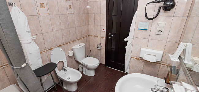 В зоне прихожей находятся вместительный шкаф с пространством для багажа и большое зеркало. Просторная ванная комната оснащена всеми необходимыми предметами гостеприимства. Сигнал Wi-Fi достаточно мощный, чтобы смотреть фильмы или играть в режиме онлайн. Для зарядки гаджетов вы можете воспользоваться как обычными, так и USB-розетками.