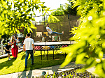 На территории отеля Ривер Парк есть парковая зона с летней террасой, где вы можете отдохнуть в летнее время, а ребенок в это время может повеселиться и попрыгать на детской площадке.