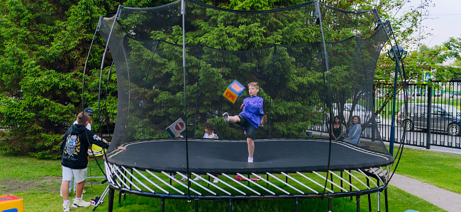 Все дети любят прыгать на батуте! Для ребёнка - это весело. Прыгаешь и высоко подлетаешь. А если ребёнок прыгает на батуте регулярно, то это еще и полезно, особенно если парк с батутом находится на набережной реки.